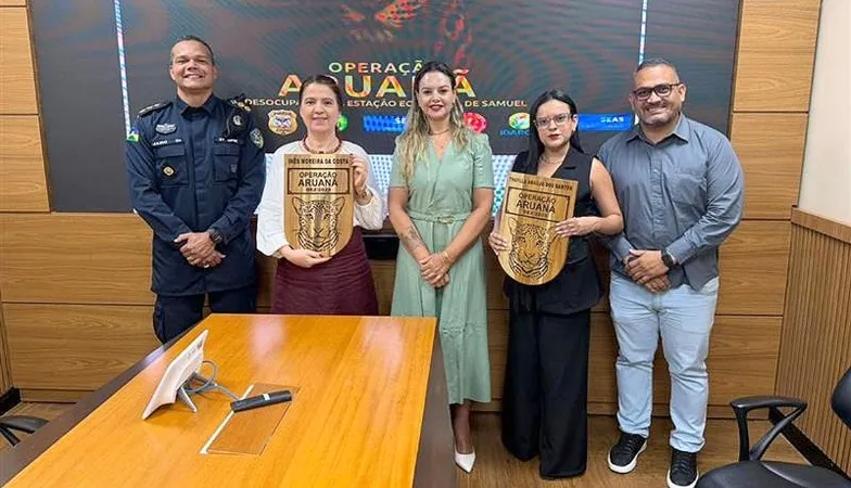 Em reconhecimento aos trabalhos desenvolvidos na Operação Aruanã, a Polícia Militar do Estado de Rondônia prestou homenagem ao Grupo de Atuação Especial do Meio Ambiente do MPRO (Gaema), por meio da assistente jurídica Thaylla Araújo dos Santos.