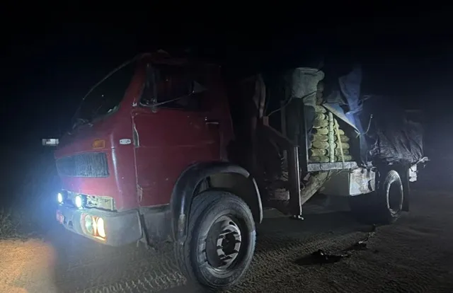 A abordagem ocorreu quando a equipe policial, em deslocamento após atendimento de outra ocorrência, identificou um caminhão transitando com a carga coberta por lona, circunstância que gerou fundada suspeita diante do histórico de ilícitos ambientais na região. Durante a fiscalização, foi constatado que o veículo transportava madeira nativa sem licença ou autorização ambiental válida.