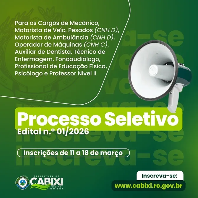 #Cabixi #ProcessoSeletivo #PrefeituraDeCabixi #Oportunidade #Rondônia #ServiçoPúblico