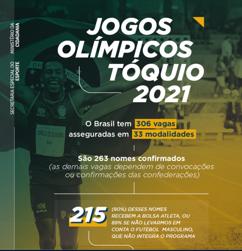 Nas Olimpíadas de Tóquio, que ocorrem de 23 de julho e 8 de agosto, participarão 91 atletas que recebem o Bolsa Pódio. Para os Jogos, o Brasil tem 306 vagas asseguradas em 33 modalidades, sendo que 263 já possuem nome confirmado.
