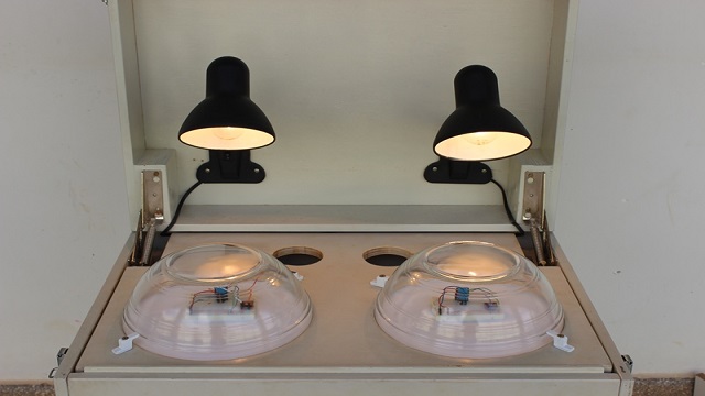 O equipamento construído consiste em dois ambientes inertes delimitados por cúpulas de vidro e no interior deles são instalados sensores de temperatura e pressão controlados por um software denominado Arduino (IDE). As cúpulas são irradiadas por ondas eletromagnéticas de mesma intensidade e as curvas de temperatura em função do tempo são apresentadas simultaneamente na tela do computador pelo Arduino.
