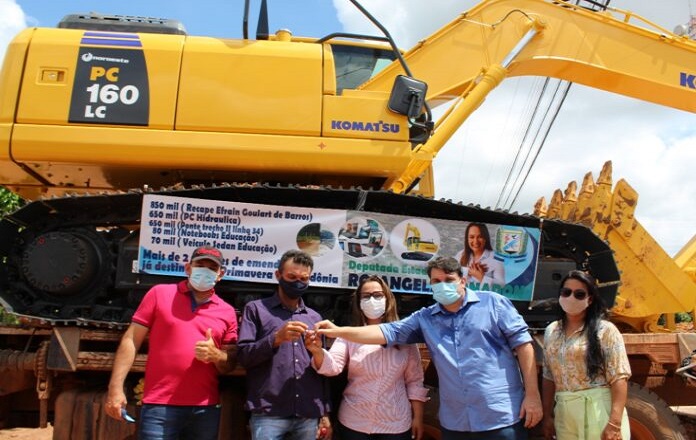 Rosangela Donadon faz entrega de escavadeira hidráulica para Primavera de Rondônia