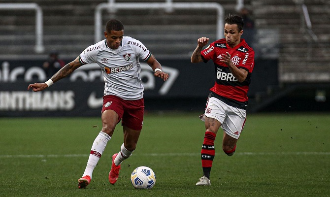 São Paulo - 04/07/2021 - Arena Corinthians. Fluminense enfrenta o Flamengo esta tarde na Arena Corinthians, pela 9ª rodada do Campeonato Brasileiro 2021. FOTO: LUCAS MERÇON / FLUMINENSE F.C. . IMPORTANTE: Imagem destinada a uso institucional e divulgação, seu uso comercial está vetado incondicionalmente por seu autor e o Fluminense Football Club.É obrigatório mencionar o nome do autor ou usar a imagem. . IMPORTANT: Image intended for institutional use and distribution. Commercial use is prohibited unconditionally by its author and Fluminense Football Club. It is mandatory to mention the name of the author or use the image. . IMPORTANTE: Imágen para uso solamente institucional y distribuición. El uso comercial es prohibido por su autor y por el Fluminense Football Club. És mandatório mencionar el nombre del autor ao usar el imágen.
