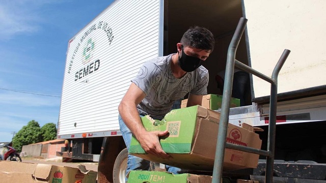 Kits alimentícios têm sido entregues regularmente às escolas da rede municipal de ensino pela Secretaria Municipal de Educação (Semed). Somente durante o mês de junho quase 3 mil kits formados a partir de aquisições da agricultura familiar já foram entregues às escolas, compostos por batata-doce, alface, banana nanica e leite.