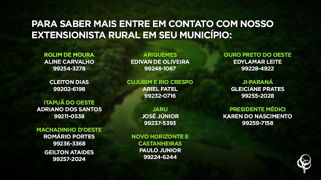 Para fazer o cadastro, que vai ate é 30 de junho, o agricultor pode entrar em contato por telefone ou mensagem via whatsapp com o extensionista responsável pelas ações em seu município. Os contatos estão na imagem.