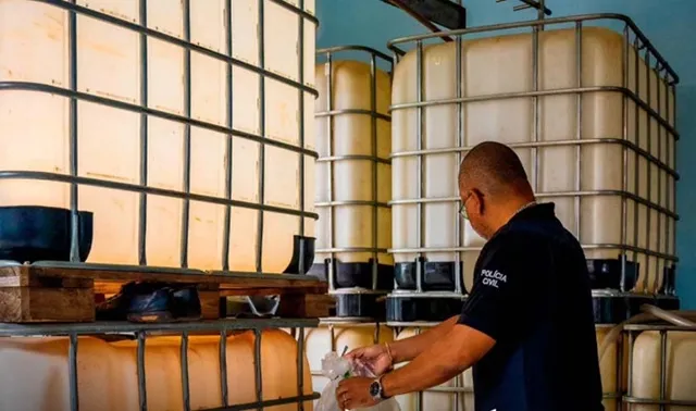 Durante o cumprimento das ordens judiciais, o suspeito foi localizado e preso. No local, foram encontrados tonéis, vasilhames e materiais utilizados na produção irregular.