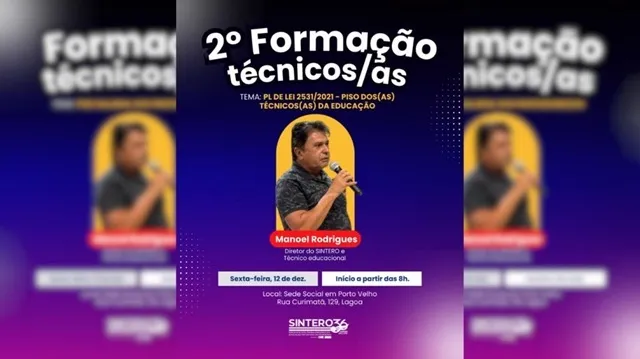 A Regional Norte do SINTERO realizará, no dia 12 de dezembro, a partir das 8h, uma formação destinada aos técnicos e técnicas em educação para discutir o Piso Salarial da categoria e os principais pontos do Projeto de Lei 2.531/2021, que trata da Política Nacional de Valorização dos Profissionais da Educação.