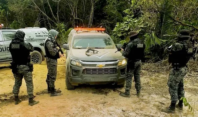 “O veículo prosseguiu em fuga até ser cercado por outras viaturas”, narraram os PMs. “Mas, ao tentar se esconder em uma área de mata, o carro ficou preso [atolou] em areia fofa. Dois indivíduos armados desembarcaram e dispararam novamente contra as guarnições, configurando um segundo ato de agressão armada”, acrescentou a Polícia Militar.